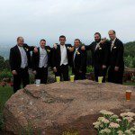 Sarah & Matt had their wedding ceremony and reception on August 31, 2013 at The Log Cabin in Holyoke Massachusetts. We started pre ceremony coverage inside the two VIP rooms. This coverage can involve photos while make up and hair dressing is being done. It often includes dramatic photos of the bride’s gown and accessories such as shoes and jewelry in a nice grouping. This may also include macro photos of the bride’s diamond ring nestled in her bouquet. These photographs are some of our favorites to enhance in post production back in the studio. The guys wanted to go outside for some fun shots prior to the ceremony. As you probably noticed there was a horse head mask worn by Matt as a private joke, it made for some interesting photographs throughout the evening. Sarah had a message for Matt on the bottom of her shoes; if you look carefully you can see the blue letters. The weather was warm and a bit humid with an overcast sky. The spirits of the guests and wedding party were as if the sun was shining upon them. The ceremony took place with the Rev. Richard Fournier as officiant. After the ceremony we did some awesome formal groups with the beautiful Log cabin vista showing the mountains in the distance. The vista is always a wonderful background for wedding photographs. After the formals the introductions began and our couple of honor proudly entered The Easthampton room. The couple went directly into their first dance, followed by toasts and dinner. The evening was filled with dancing and good conversation, the dance floor was busy all evening even when Sarah and Matt were visiting each table saying hello to their guests. DJ Chris Neil did a great job entertaining the guests. Please enjoy some of Sarah and Matt’s photographs from their wedding day.